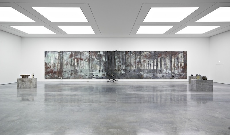 For those still visiting exhibitions, White Cube has opened a third gallery south of the river in Bermondsey Street, a location convenient for bankers and hedge fund traders, with a courtyard big enough to accomodate a fleet of limos (pictured above). With its white walls and concrete floors polished to resemble marble, the emporium is minimalist yet glitzy, its industrial edge overlaid with a veneer of corporate elegance. These surroundings (pictured below with Anselm Kiefer's, Il mistero delle cattedrali) reduce work by major artists like Agnes Martin and Robert Ryman, renowned for the subtlety and complexity of their paintings, to little more than decor. For collectors living in anodyne architectural mediocrities like One Hyde Park in Knightsbridge, this helps them visualise what the art will look on their walls.