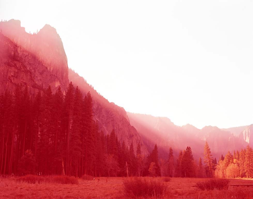 Nature is still resplendent, though, in David Benjamin Sherry’s (USA) glorious landscapes (pictured above: Hyperborealis). Iconic shots of Yosemite and Yellowstone National Parks pay tribute to Ansel Adams and the mythology of the great American West. But whereas Adams specialised in the crystal clarity of black and white, Sherry’s mountains, lakes and forests appear through veils of cyan, lavender, yellow or red whose artificial intensity creates a giddy sense of chemically-induced euphoria.