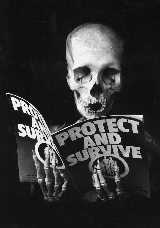 In 1974 the government issued Protect and Survive, a pamphlet advising people on how to survive a nuclear attack. Anyone gullible enough to believe that their advice might save them would, inevitably, end up like Kennard’s reader – as a skeleton (pictured right).