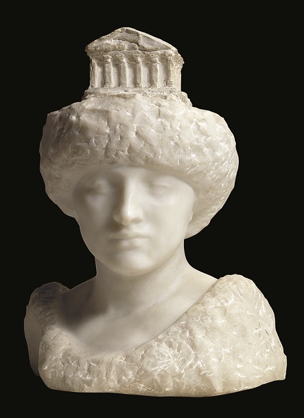 Rodin’s fascination with dance is underlined here too, by subtly bringing our attention to the vivid choreography of the processions of gods, creatures, men and animals, telling their stories of myth and derring-do high on the Parthenon frieze. One of the purposes of the superb pairing of the heights of Greek art and Rodin is indeed to demonstrate that the inspiration for Rodin’s The Kiss to have been the intertwining of two goddesses on the Parthenon frieze, although Rodin, rampant heterosexual that he was, makes sure we understand his version as man and woman. (Pictured below: Pallas (Athena) with the Parthenon, marble and plaster, 1896, © Musée Rodin)