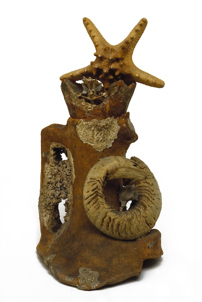 In Eileen Agar’s Marine Object (1939, pictured right) the neck of a Greek amphora covered in barnacles from centuries spent underwater has been further adorned with shells, a skull and a ram’s horn. This collage of found objects is a poetic meditation not just on death and the items we leave behind – whether bones, shells, artifacts or buildings – but on the powerful hold that such relics exert on the imaginations of the many generations who come afterwards.