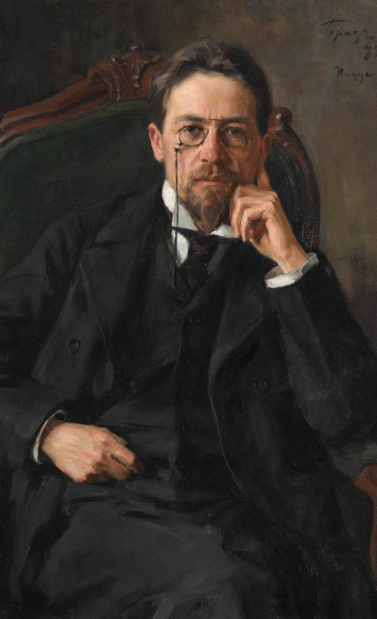 Which makes it something of a surprise to read that Streptova made her name in the Russian provinces playing comedy and vaudeville, before she came to the empire’s two big cities where she earned fame in the plays of Alexei Pisemsky and Alexander Ostrovsky. These two hang next to their onetime star, a welcome light in their faces. Repin’s Pisemsky catches the writer at the end of his life, but there’s a droll glimmer in his eyes. Perov gives Ostrovsky’s features a deep understanding of life, but we feel they might at any moment break into a smile, even an invitation to share a glass or two. He looks squarely out at us with soft confidence; Iosif Braz’s Chekhov engages us in a similar way (pictured above left), but there’s surely more ambiguity in Chekhov’s gaze, a sense that for him the glass remains half-empty. It was the final portrait Tretyakov acquired, in the year he died: Chekhov would only live only six more and died at 44