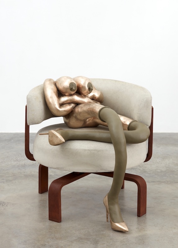 Some Bunnies are cast in gleaming bronze that enhances their status. They may be footballers’ wives rather than cheap dates, but there’s a price to pay. In a pose suggesting abject submission, Sex Bomb drapes herself over a concrete chair with her bum in the air. Goddess perches atop a chair, golden arms flung wide as though flying high, but she also exudes a whiff of hysteria. She may have snared a rich or powerful man, but that only makes her more dependent and vulnerable.