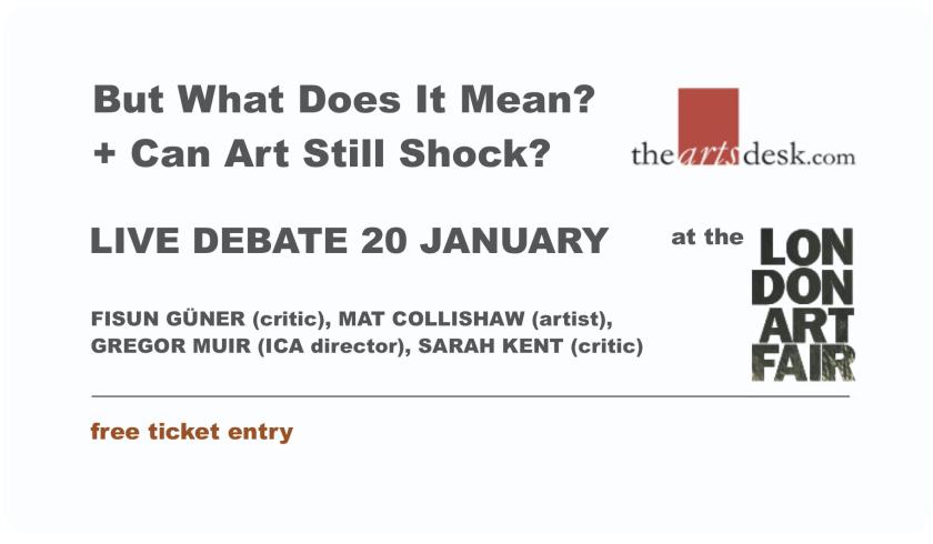 The latest in the live events staged by theartsdesk aims to shed light on controversies and myths about the value and purpose of contemporary visual art. Taking place at the heart of the London Art Fair, where more than 100 galleries will present work this week, this double debate, chaired by our visual arts critic Fisun Güner, is the place to come and ask the tough questions about the relationship between artist and viewer.