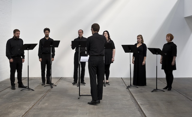 Singers are nothing new to the Turner Prize. Scottish artist Susan Philipsz won in 2010 with a recorded rendition of traditional Scottish ballads, and now we have Janice Kerbel’s song cycle for six classical singers (DOUG pictured below) whose elastic vocal chords are stretched to remarkable effect – to my untuned ears one male singer appears to go from “castrato” to bass in under a minute.