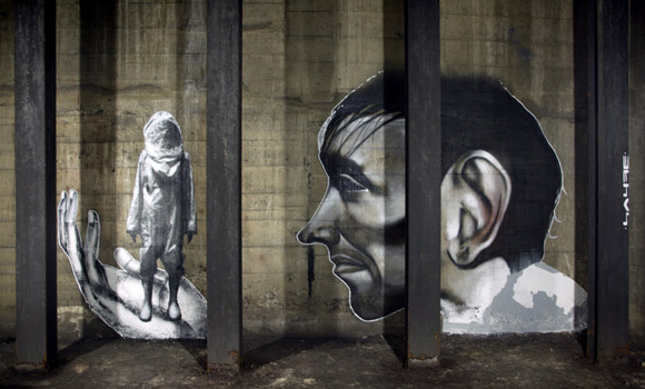 He and PAC, a slightly younger and leaner street artist, have been toiling away at the Underbelly Project for 18 months. Between them they’ve made perhaps 75 visits to the site. This is to be the last. After tonight, their only connection to the place will be in the form of photographs and film. Both are jittery with tension. PAC has had a last smoke before descending, also a stiffening shot of vodka. They’ve made it this far. If they get through tonight, they will have successfully brought more than 100 artists to the site, undetected and unprosecuted. For a couple of slacker-dude outsider types, not obvious inheritors of the military-precision gene, it’s been one hell of an undertaking. There have been a few scrapes, mind. Street artists – practitioners of what’s also known as urban art – are used to working more or less alone under cover of darkness, but in terms of dodging arrest this has been in a different league. Back above ground they have kept stum about it ever since. Not a word has squeaked out into a media environment where news goes viral in a nano-section. Until now.