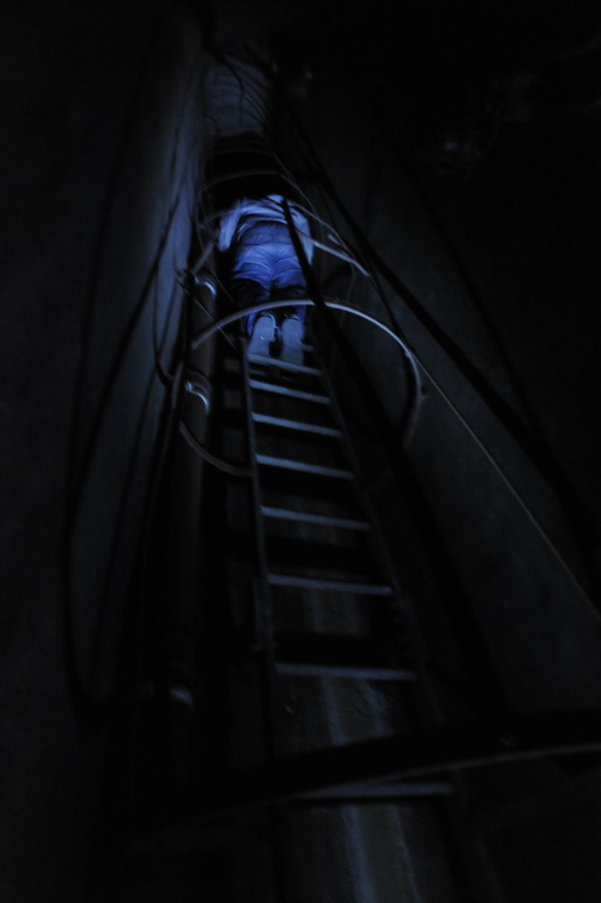 One by one we sink through a manhole, down a long hoop-ringed ladder (pictured right, image by Martha Cooper) to a small concrete platform, flanked on either side by high walls. We have plummeted 10 metres below the Parisian street but still we are enjoined to keep shtum. This thing has been a long time in the planning and it would disastrous to be discovered now.