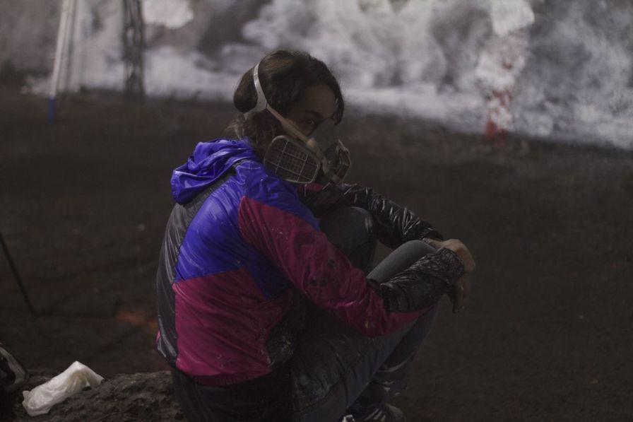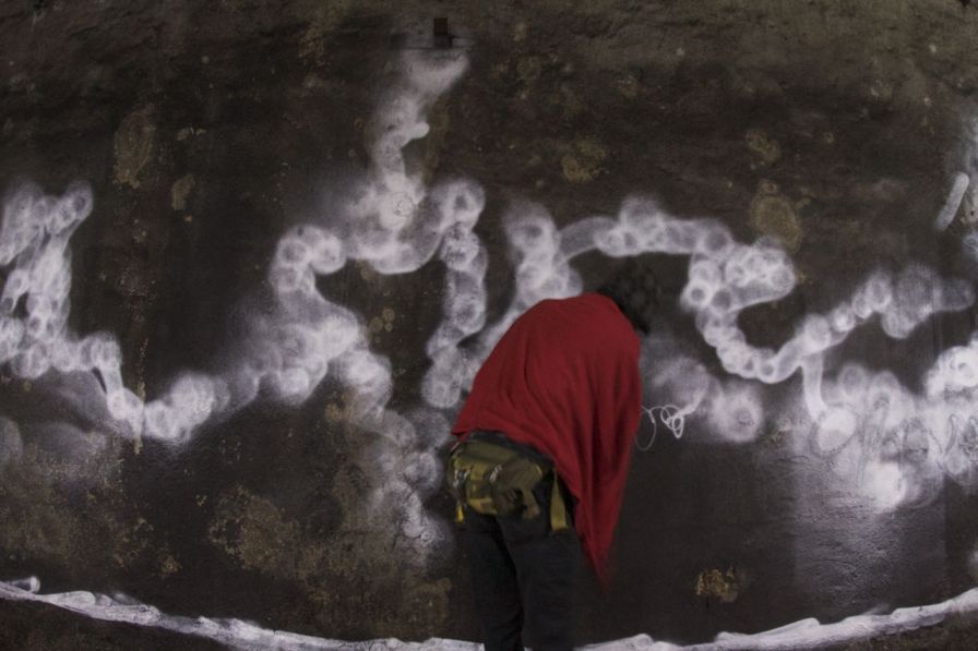 The most intriguing artist to watch is Will Baras, a graphic artist from Birmingham whose work for several hours resembles a kind of splashy patchwork of pinks, blues and purples. He gives the impression that he has no idea where he is going with it. Unlike Futura, who has awoken to apply a few more speculative dabs to his wall, Baras seems bothered. Street artists are used to time pressures, but not to the working conditions, where the paint fumes prick eyes and the walls are sweating with damp. “It’s the least hospitable place I’ve ever been by a long shot,” says PAC. There are two photographers recording the Paris Underbelly and also a 360 time lapse camera. “I’m assuming that the time lapse is going to go from crystal clear to a complete fog. It’s like a storm settling in.”