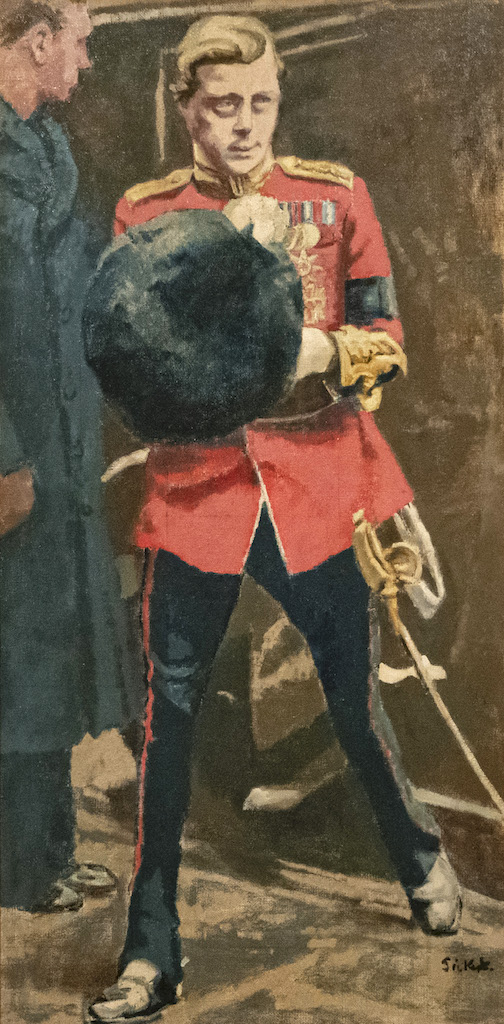 An image is forming in my mind of Sickert as an observer – a voyeur who prefers to watch rather than engage and who often feels like an outsider. The idea is confirmed by the glorious paintings in the final room in which he grabs an image from a newspaper, blows it up, transfers it onto canvas with the help of a camera lucida and thus transforms a split second of time into a snapshot of an era. Edward VIII (pictured above right) is shown nervously stepping into the public eye, hopelessly unprepared for royal office (he would abdicate a few months later). Jack and Jill, 1938 features Edward G. Robinson and Joan Blondell, stars of the gangster movie Bullets and Ballots. Sickert has drained all the warmth from the original publicity shot to make the pair look as terrified as rabbits caught in the headlights – trapped in the glare of publicity. Seeing and being seen – whether on the world stage, in the theatre, or on screen – is the main subject of paintings which anticipate Warhol’s explorations of celebrity by nearly 30 years.
